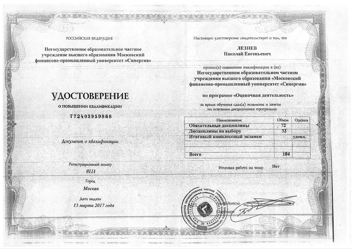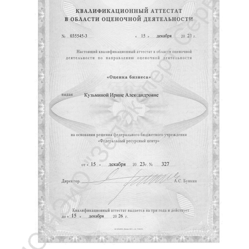Стаж в оценочной деятельности с 1987 года по настоящее время.
