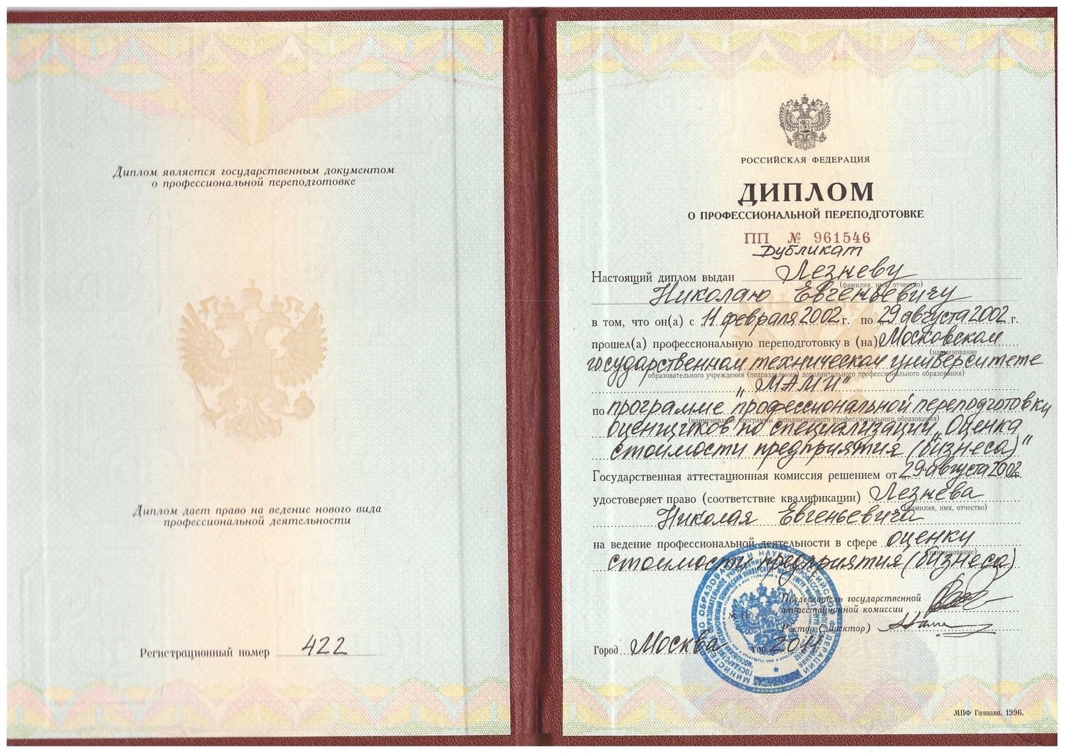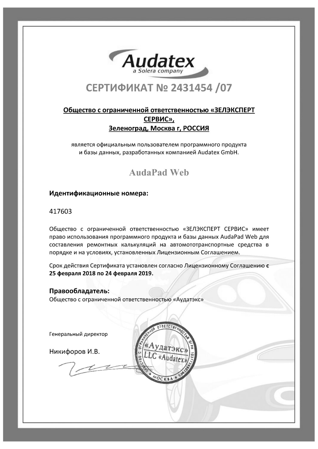 Генеральный Директор Лезнев Николай Евгеньевич.