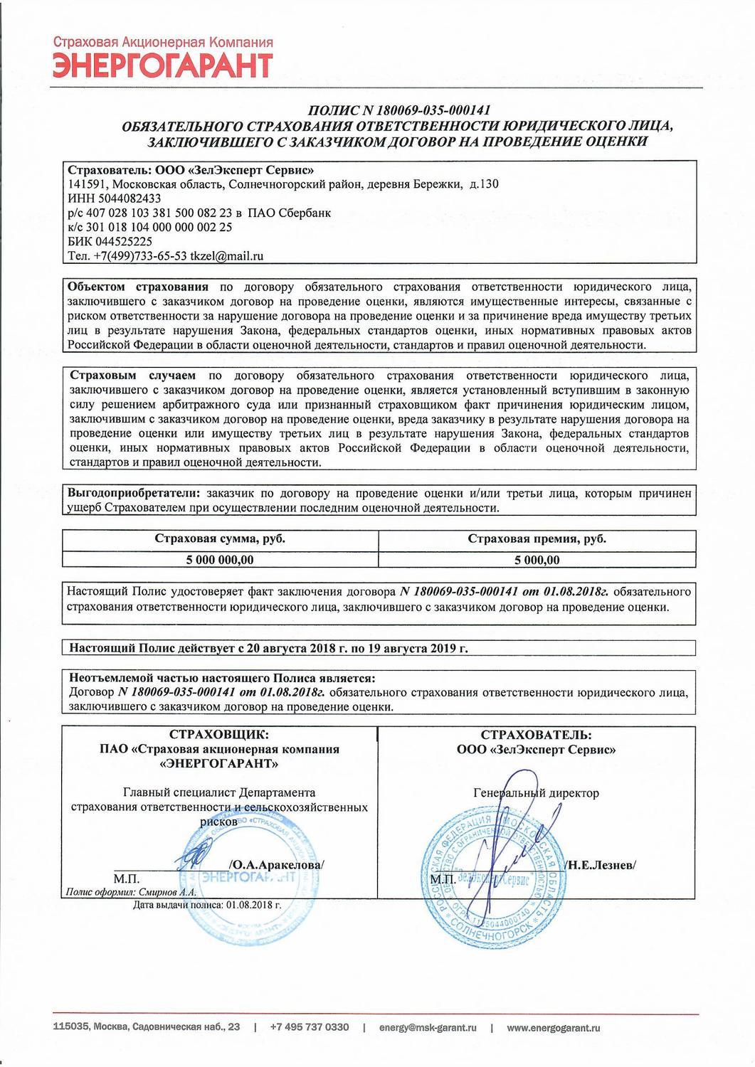 Документы на осуществление деятельности OOO "ЗелЭкспертСервис"