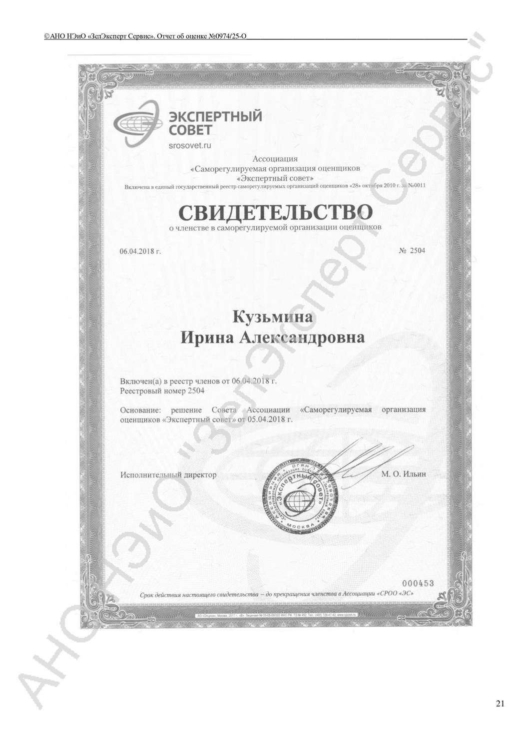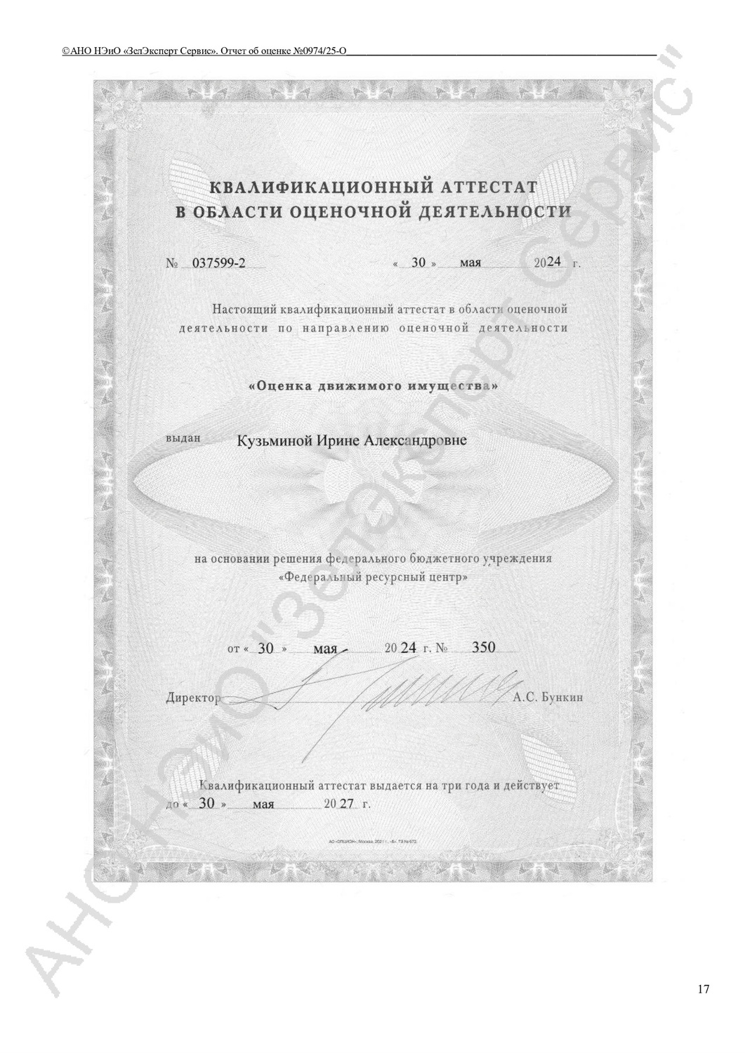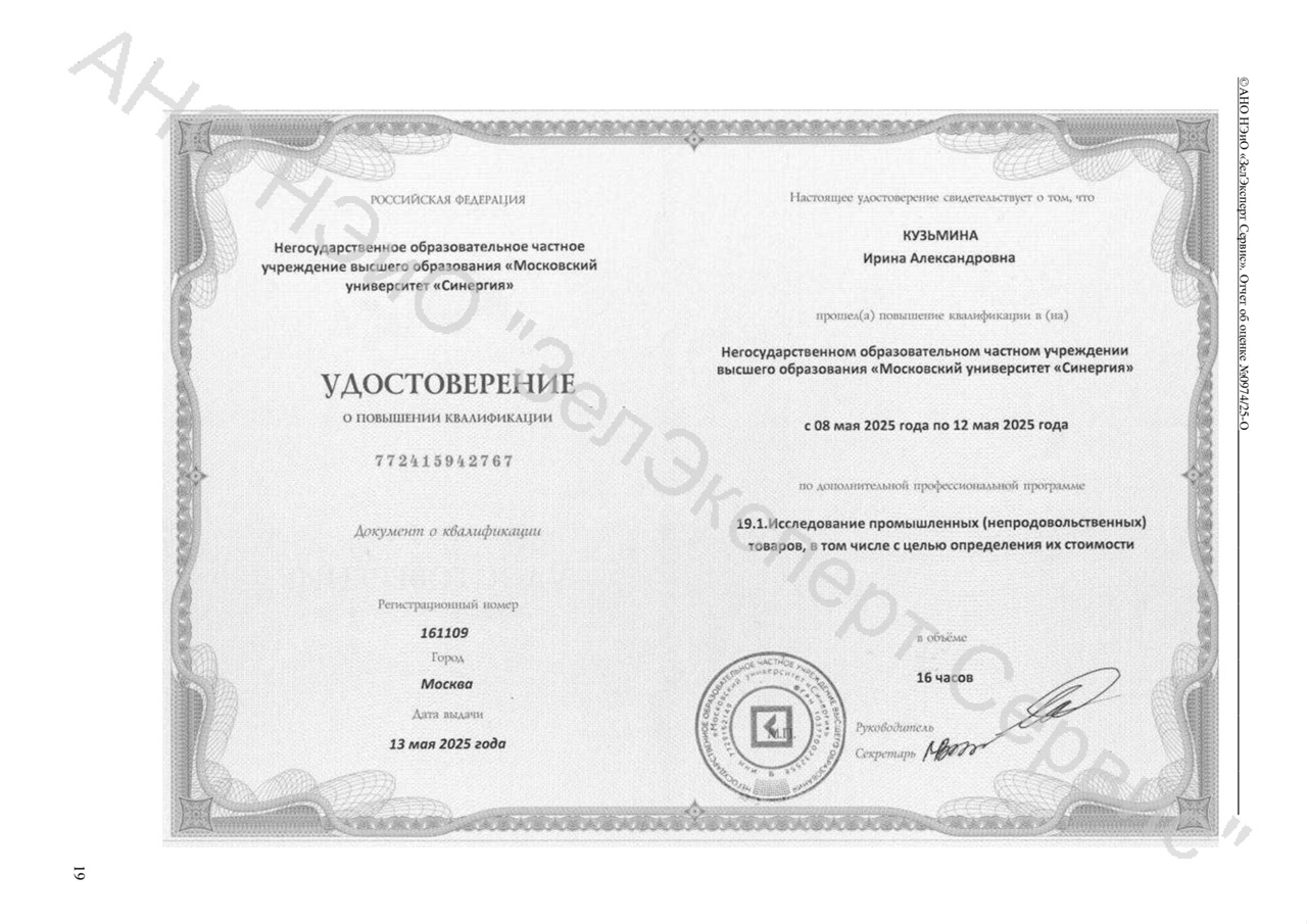 Стаж в оценочной деятельности с 1987 года по настоящее время.