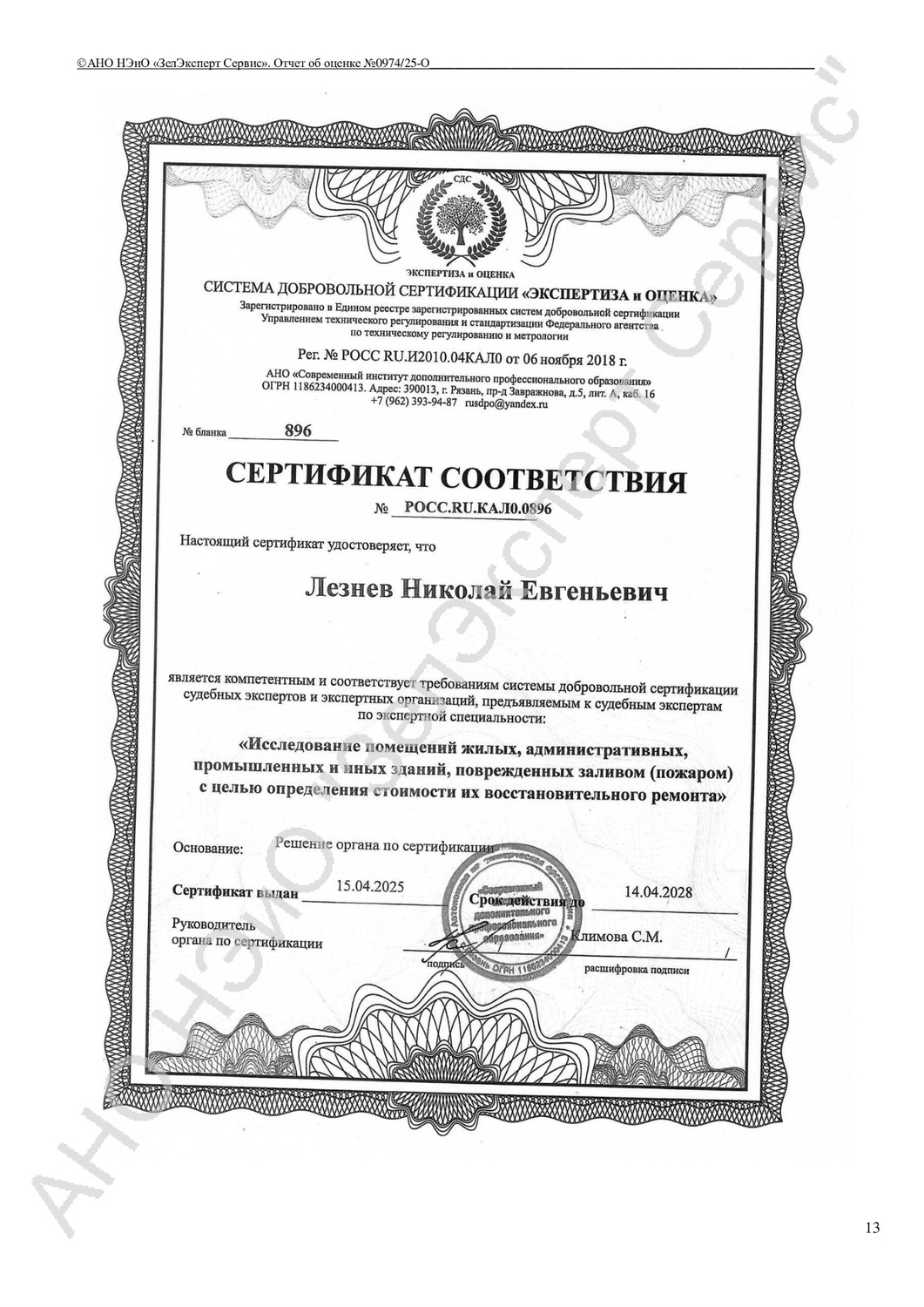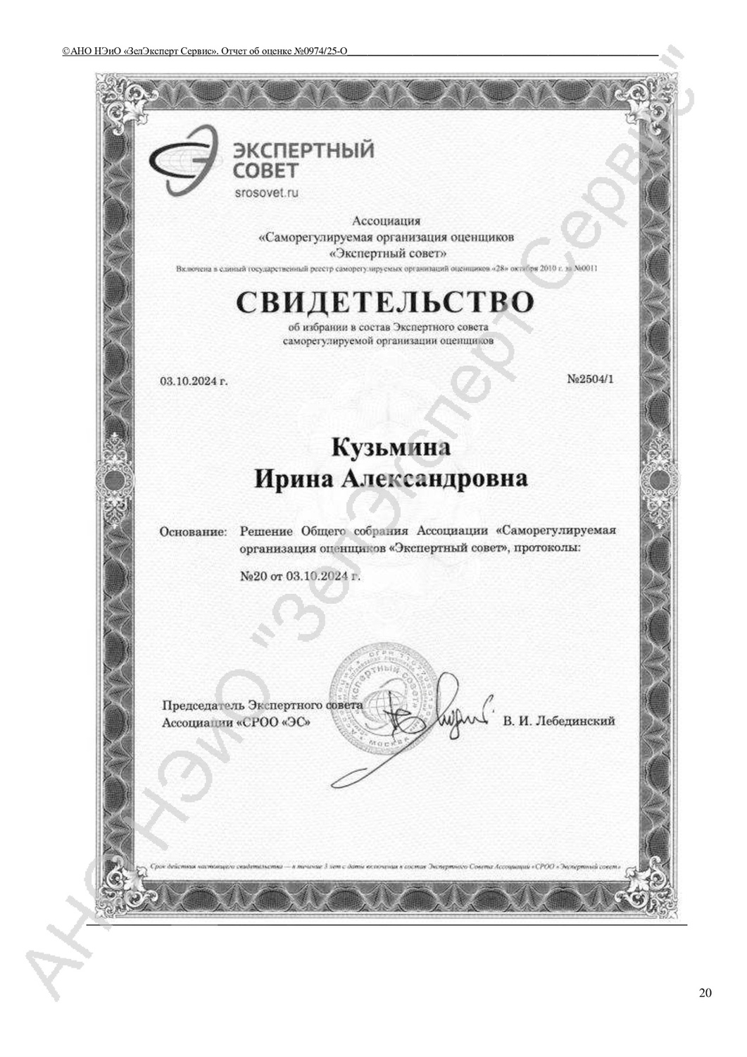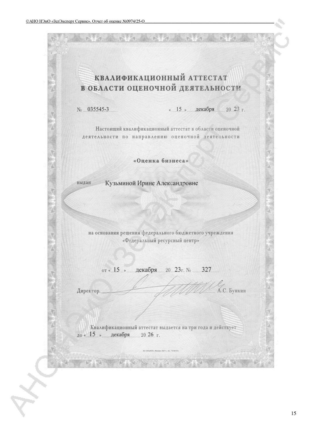 Стаж в оценочной деятельности с 1987 года по настоящее время.